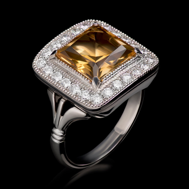"Citrine Enlightenment." A Golden Citrine & Diamond Cluster Ring